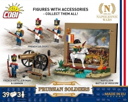 Die Zubehörteile und die Ausrüstung sind nach den Gegebenheiten der napoleonischen Ära gestaltet: neuer Tschako mit Pompons, Epauletten, Rucksäcke und Gewehre mit aufgesetztem Bajonett. Der Bausatz ist voll kompatibel mit anderen Marken und erweitert die Sammlung der Serie NAPOLEONIC WARS hervorragend.
