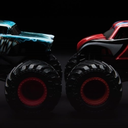 Zwei legendäre Rivalen im Monster-Jam-Look bringen Action direkt auf deinen Boden. Originalgetreue Farben und Grafiken garantieren eine starke Show – auch im Regal.