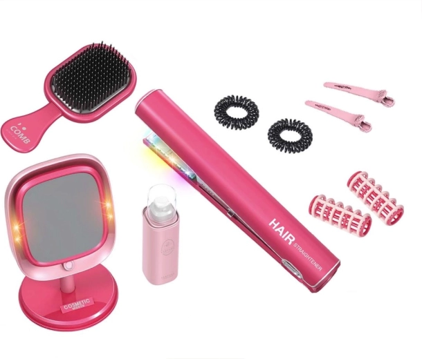 Kinder-Haarstudio mit Glätteisen und LED-Spiegel