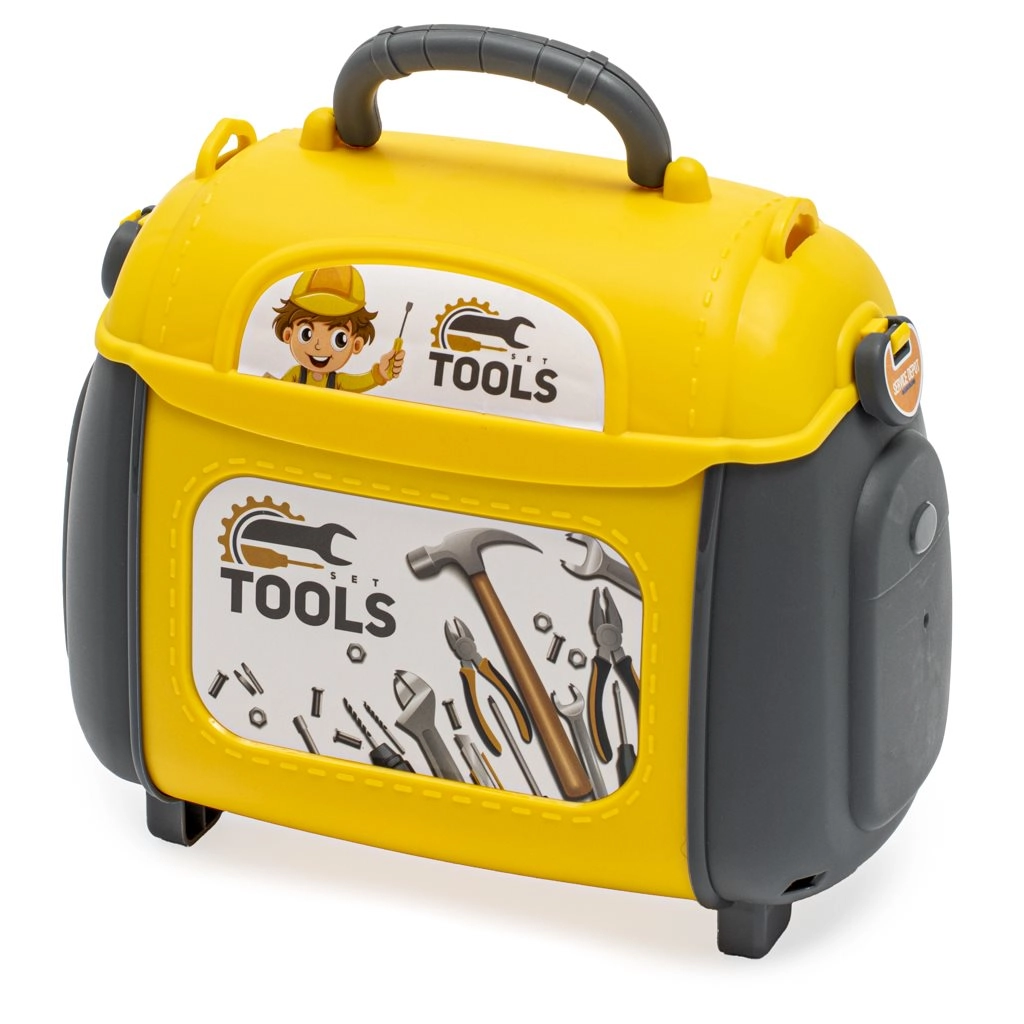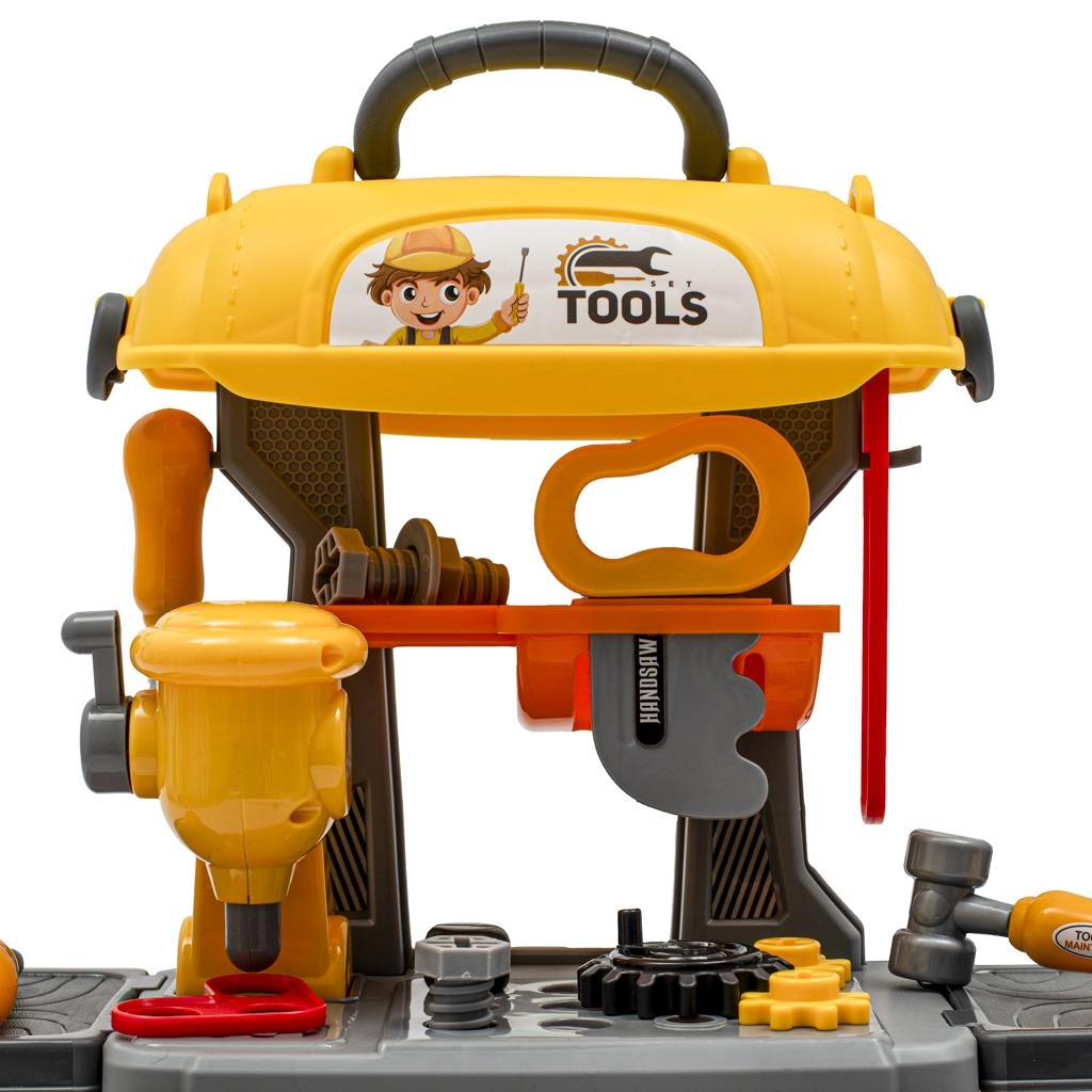 Diese tragbare Kinderwerkstatt im praktischen Koffer bietet alles, was Kinder für sicheres Handwerken brauchen. Dank durchdachter Anordnung und funktionaler Elemente kann Ihr Kind Griffkraft, Hand-Auge-Koordination und logisches Denken trainieren.