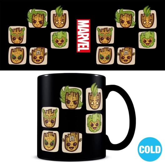 Genießen Sie Ihr Lieblingsgetränk mit einzigartigem Stil – diese Keramiktasse mit GROOT‑Motiv verändert beim Eingießen eines heißen Getränks ihr Design. Der thermo-reaktive Druck sorgt für einen unterhaltsamen Effekt, der bei jeder Verwendung Freude bereitet.