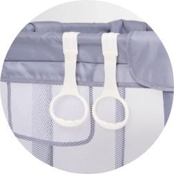Die stabile, verstärkte Konstruktion mit weicher Polsterung und abgerundeten Kanten ist auf Sicherheit und Komfort ausgelegt. Der Laufstall ist leicht, einfach zu montieren und pflegeleicht. Im Lieferumfang sind 2 praktische Ringe enthalten, die am oberen Rand befestigt werden und dem Kind beim Hochziehen sowie beim ersten Aufstehen helfen.