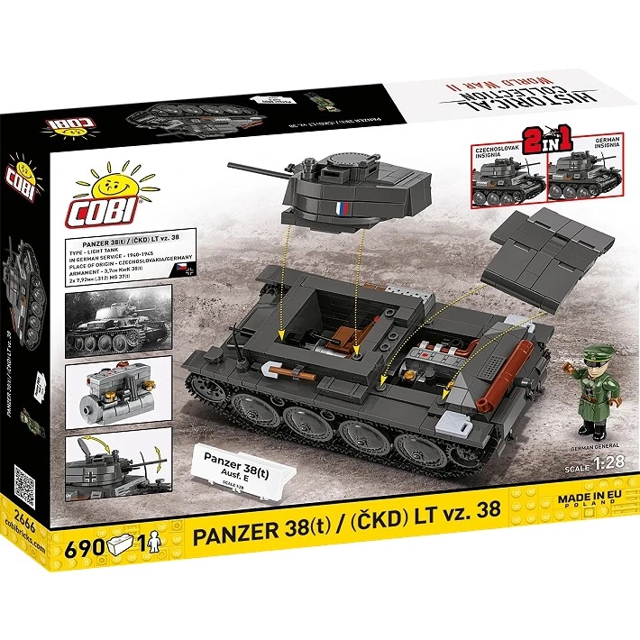 Entdecken Sie zwei Gesichter einer Legende. Der Bausatz Panzer 38(t) / LT vz. 38 bietet ein einzigartiges Bau- und Ausstellungserlebnis. In der Packung finden Sie 690 präzise gefertigte Teile, mit denen Sie entweder den ursprünglichen tschechoslowakischen LT vz. 38 oder die deutsche Version Panzer 38(t) bauen, die sich durch Zuverlässigkeit und Fahreigenschaften auszeichnete. Der Maßstab 1:28 betont Proportionen und charakteristische Merkmale der realen Fahrzeuge.