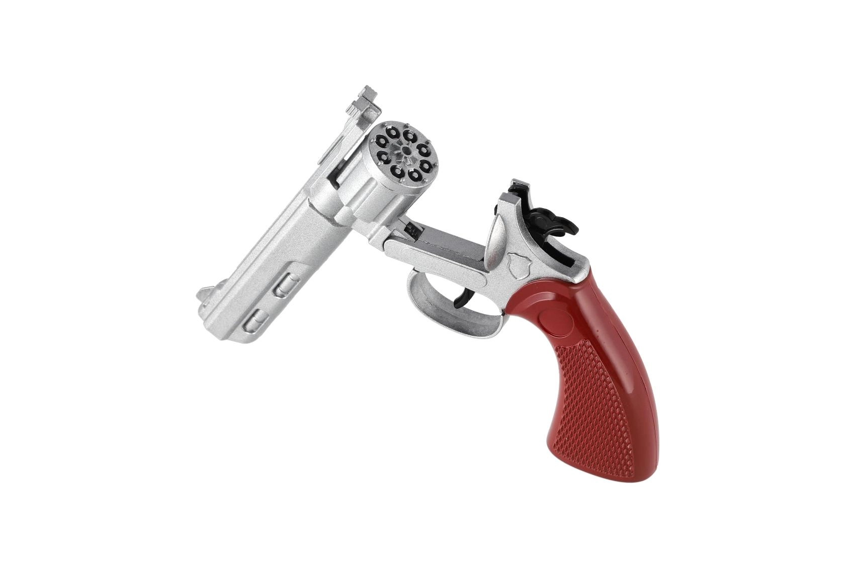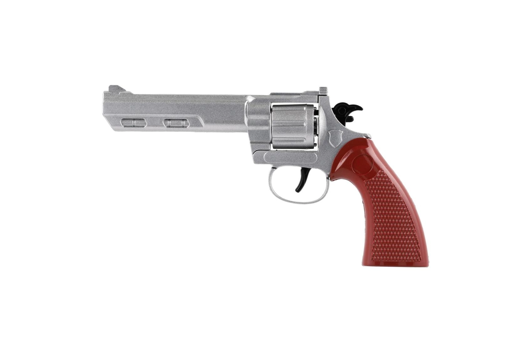 Dieser stylische 22-cm-Revolver bietet einen authentischen Look und zuverlässige Funktion für das Kinderspiel. Der Metallkörper wirkt realistisch, während der Soundeffekt beim Einsatz von 8-Schuss-Kapseln die Abenteuer-Atmosphäre verstärkt. Dank des ergonomischen Griffs liegt die Pistole auch bei längerem Spielen gut in der Hand.