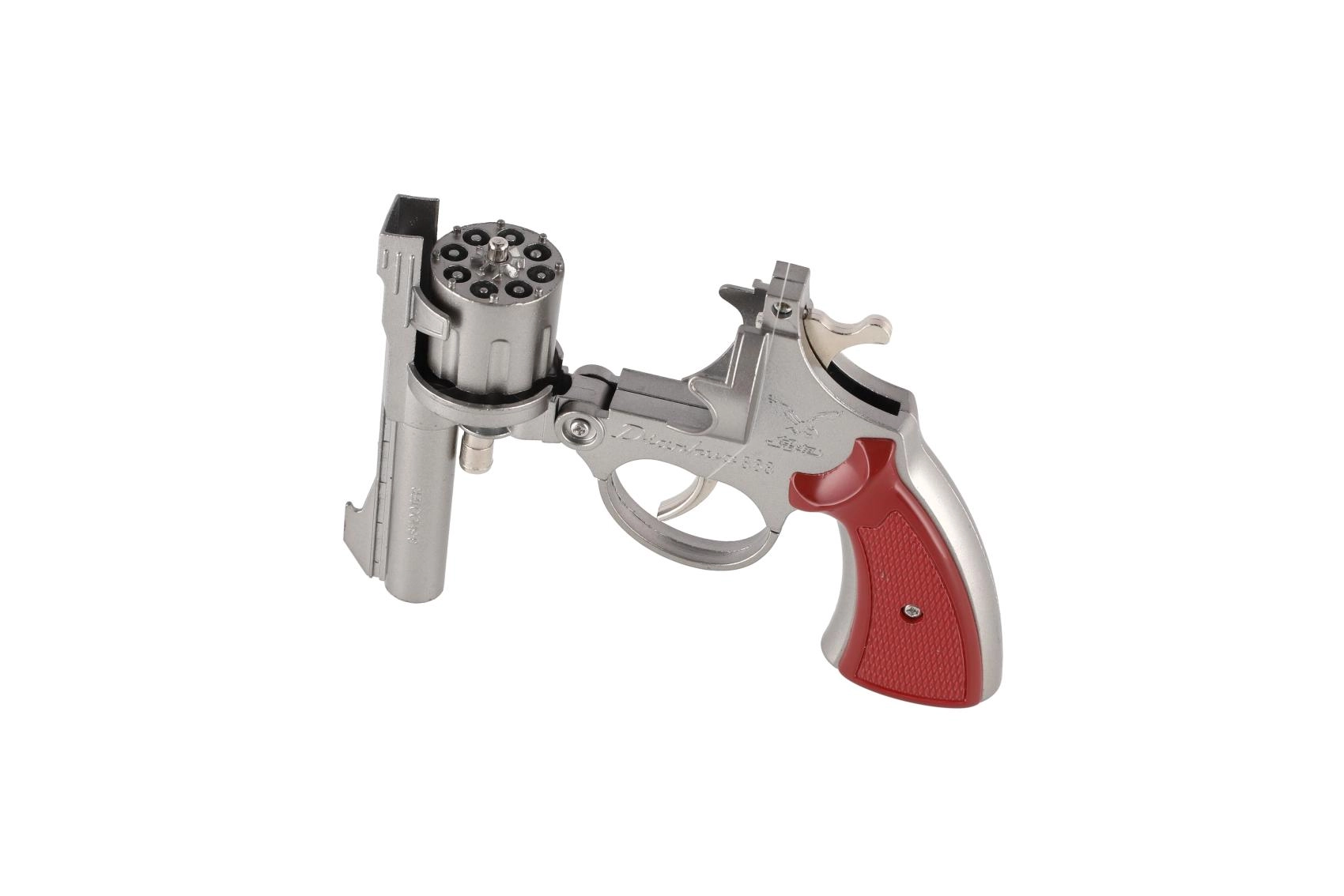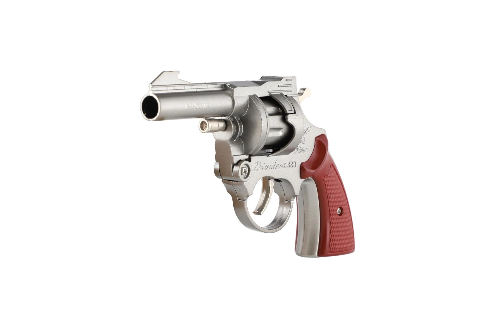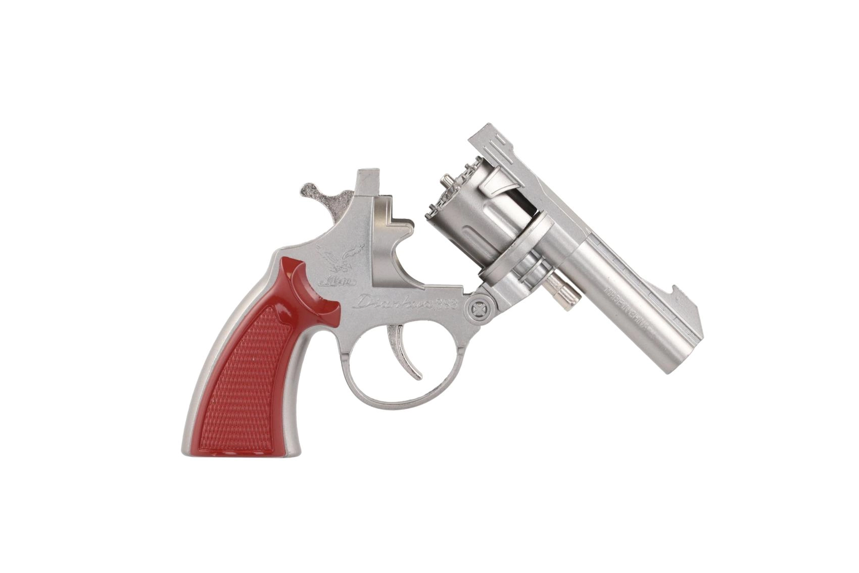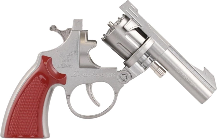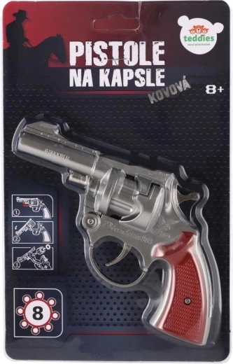 Diese metallische Kapsel-Pistole bietet ein authentisches Spielerlebnis ohne Risiko. Die Trommel ist für 8-Schuss-Kapseln ausgelegt, die beim Drücken des Abzugs einen Soundeffekt erzeugen. Das robuste Metalldesign und der bequeme Griff gewährleisten Langlebigkeit und Komfort beim Halten.