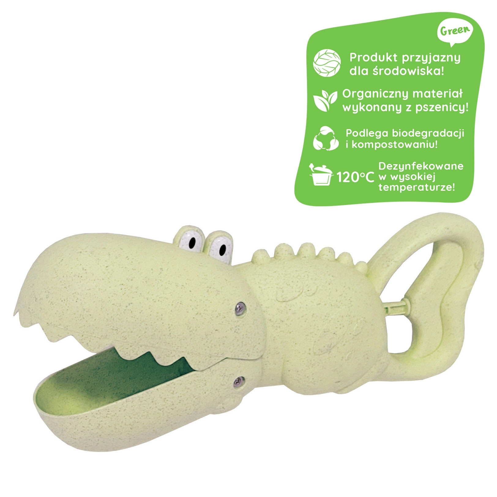 Entdecken Sie die unterhaltsame und umweltfreundliche Krokodil-Schaufel, die jeden kleinen Burgenbauer begeistert. Dank der cleveren Form nimmt sie Sand und Wasser leicht auf, transportiert und gießt sie aus und übernimmt so die Rolle von Schaufel und Eimer in einem. Ideal für den Spielplatz, den Sandkasten, den Strand und den Garten.