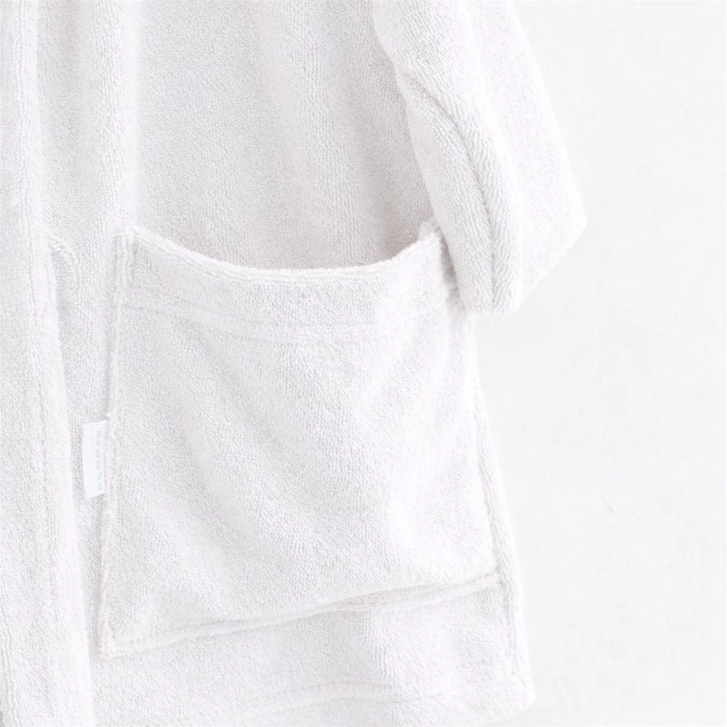Der Bademantel hat einen eingenähten Gürtel, der nicht verloren geht und beim Gehen nicht stört. Die tieferen Taschen fassen ein Taschentuch, ein kleines Spielzeug oder ein Haargummi. Ein großartiger Begleiter nicht nur fürs Badezimmer, sondern auch nach dem Schwimmen im Pool oder am Meer.