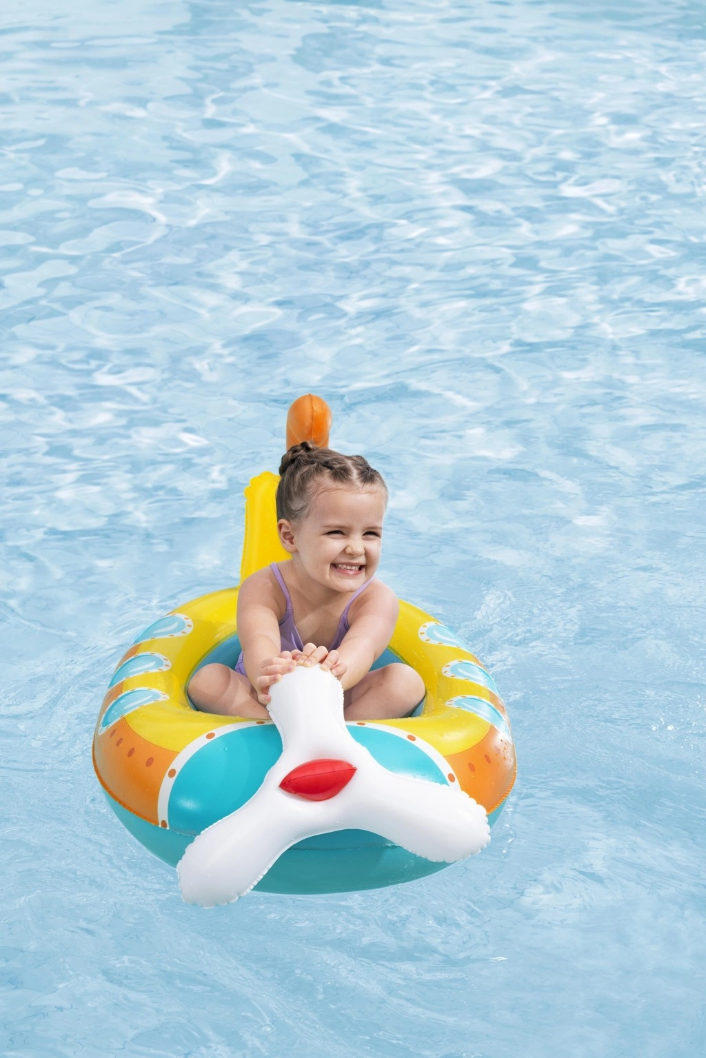 Das U‑Boot‑Modell hat zwei unabhängige Luftkammern für besseren Auftrieb und eine ruhigere Fahrt auf dem Wasser. Verspielte Details mit weißem Propeller fördern interaktives Spielen.