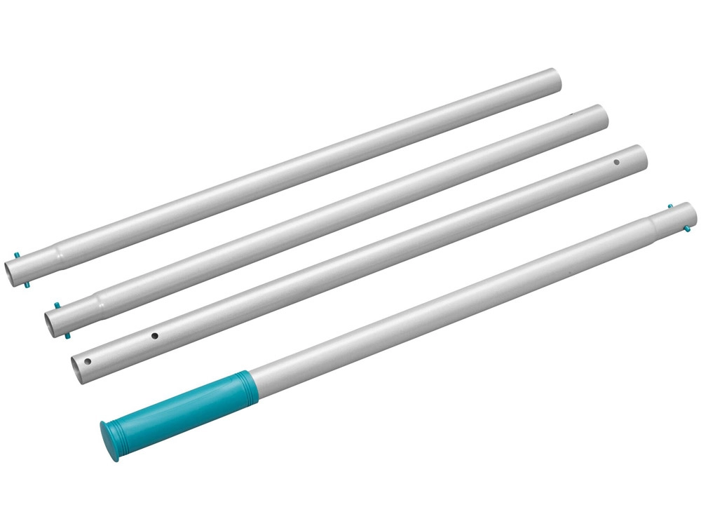 Leichte, steckbare Stange mit Schnellverschluss und zwei Aufsätzen für Boden, Wände, Ecken und Stufen. Einfache Manövrierbarkeit und effektive Reinigung des gesamten Pools.