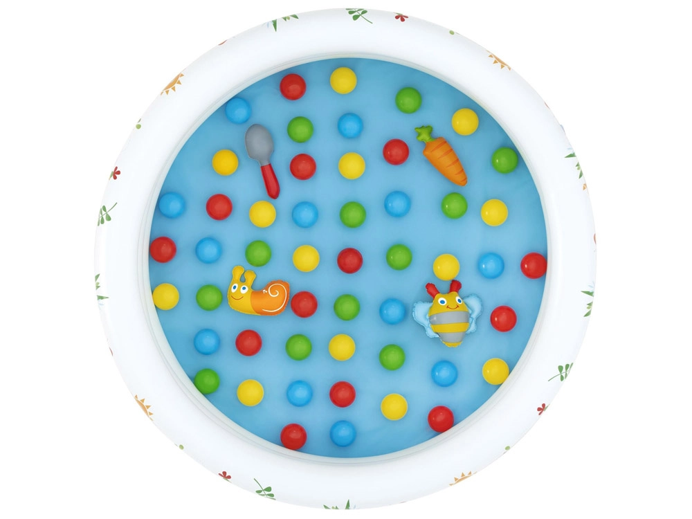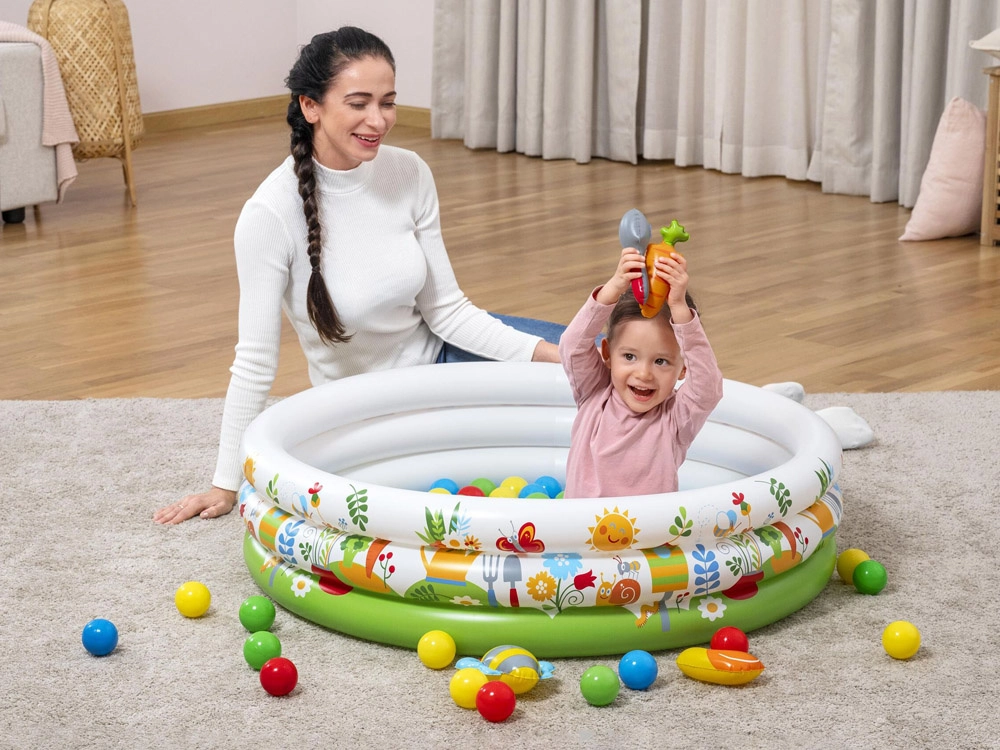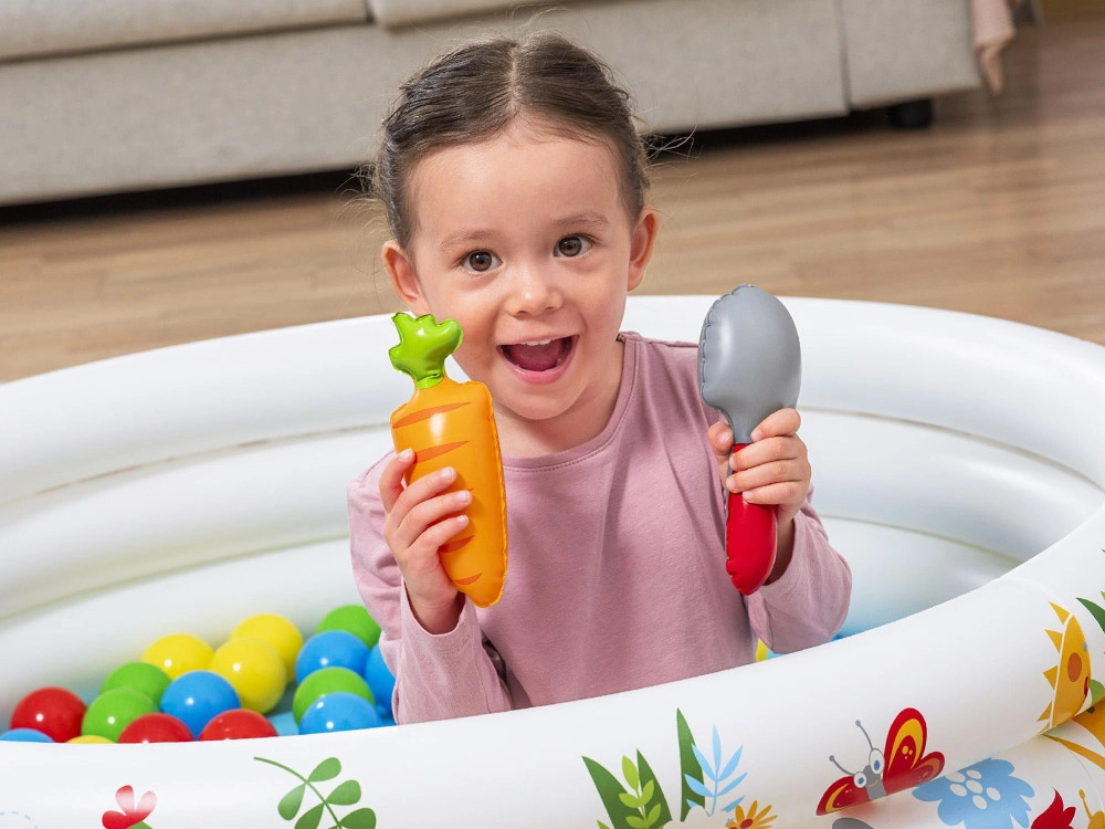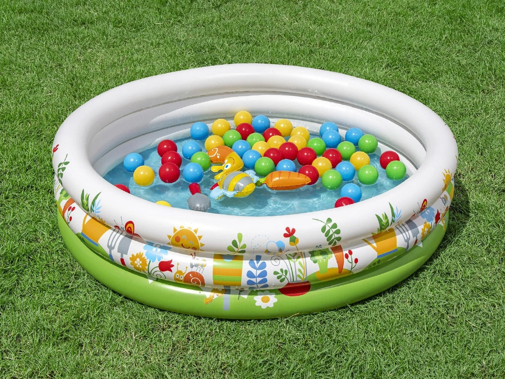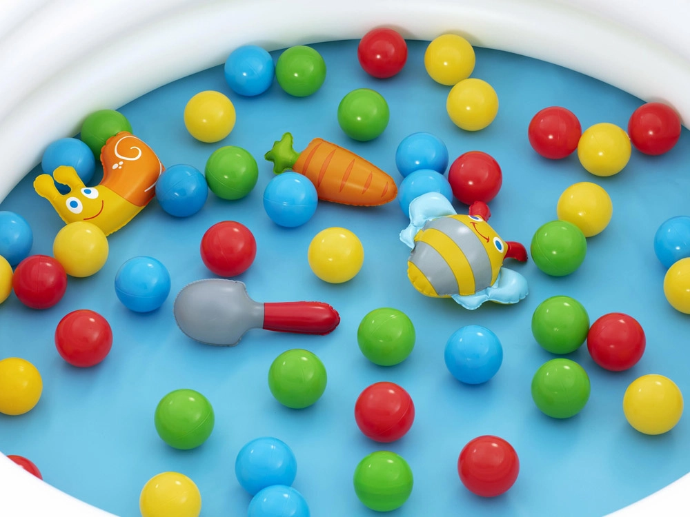Bestway aufblasbares Kinderball- und Planschbecken Sprouts & Spring 102 × 25 cm, 50 Bälle und Spielzeug