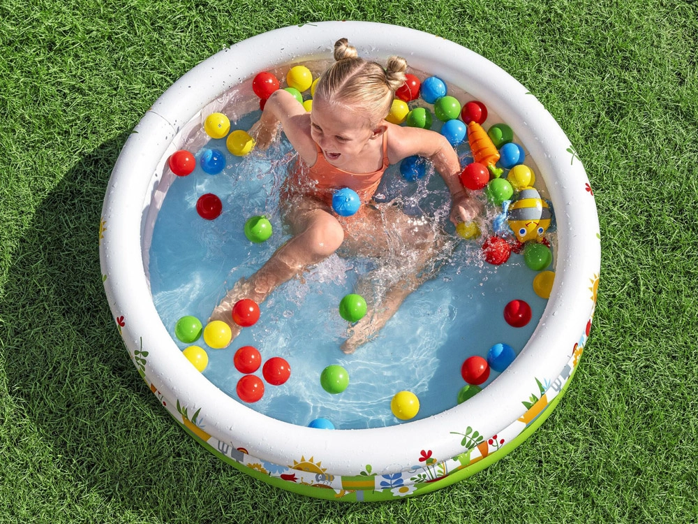 Genießen Sie Spielspaß das ganze Jahr – drinnen mit Bällen oder draußen mit Wasser. Das flache Volumen ist ideal für erste Wassererfahrungen und sicheres Erfrischen.