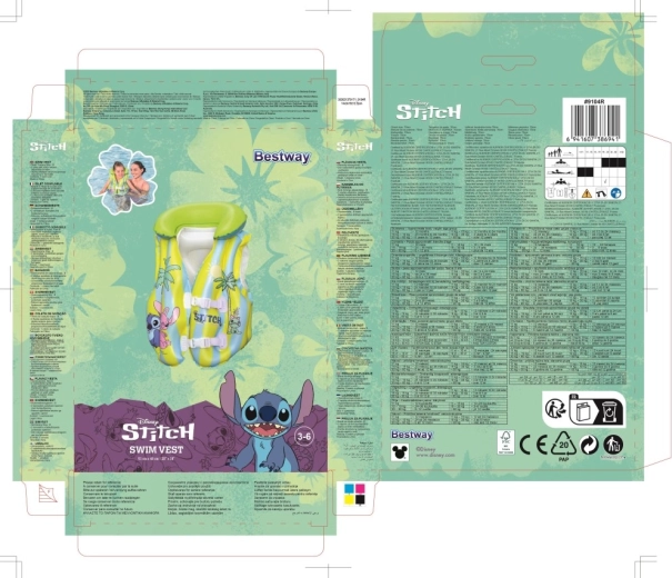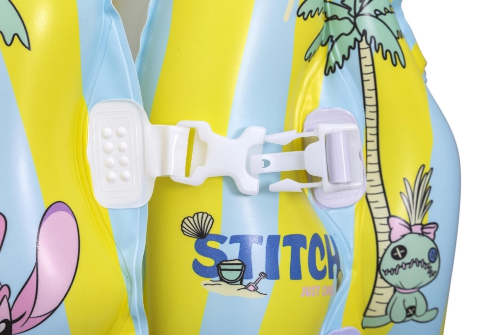 Diese aufblasbare Kinderweste mit dem beliebten STITCH-Motiv hilft kleinen Schwimmern, sich im Wasser sicherer zu fühlen. Dank mehrerer aufblasbarer Kammern, des weichen Kragens und der verstellbaren Schnallen passt sie sich leicht dem Körper an und gewährleistet Stabilität im Pool und auf ruhigen Gewässern. Pastellgelbe und hellblaue Streifen mit verspielten Prints erhöhen die Sichtbarkeit und sorgen für einen fröhlichen Look.