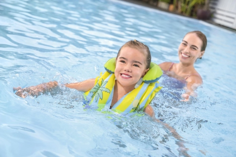 Die Weste besteht aus hochwertigem, strapazierfähigem Vinyl für eine lange Lebensdauer. Praktische Ventile ermöglichen schnelles Auf- und Abpumpen, sodass sie im Handumdrehen einsatzbereit ist und nach dem Baden leicht verstaut werden kann. Ideal als Schwimmhilfe zum Lernen und Spielen im Wasser (ersetzt keine Rettungsweste).