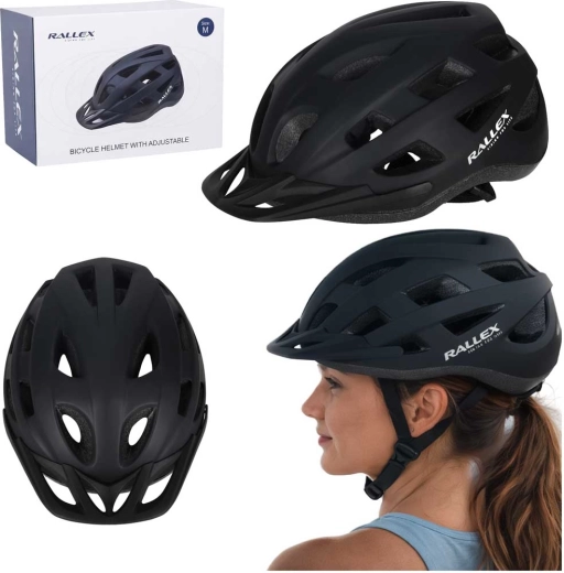 Fahrradhelm Rallex, verstellbar, schwarz, Größe M (54–58 cm)