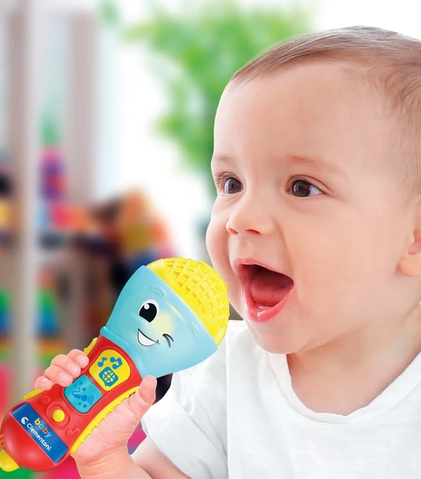 Das sprechende Kinder-Mikrofon CLEMENTONI ist ein großartiges interaktives Spielzeug für kleine Sängerinnen und Sänger. Mit Liedern, Hintergrundmusik und einfachen Sätzen vermittelt es die ersten Buchstaben und neue Wörter in 4 Sprachen. Eine farbige LED-Diode und 2 Funktionstasten sorgen für eine fesselnde Lichtshow und lustige Effekte.