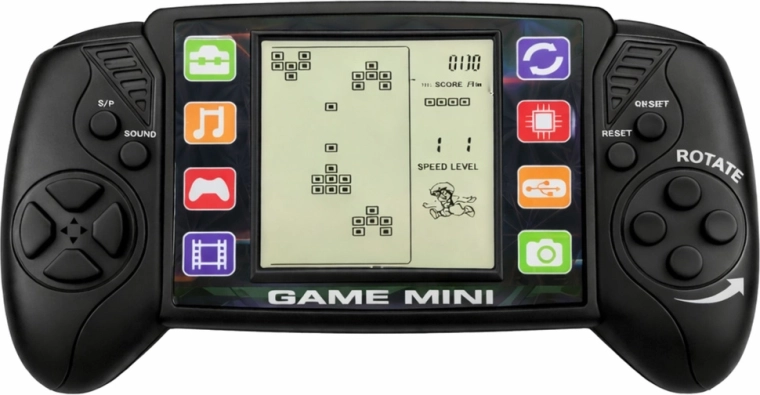 Diese kompakte Konsole bringt das legendäre Spiel TETRIS im tragbaren Format. Dank des hellen LCD‑Displays und intuitiver Tasten genießen Sie flüssiges Spielen zu Hause, unterwegs oder in der Pause in Schule oder Arbeit. Das Prinzip ist einfach, aber süchtig machend: Stapeln Sie fallende Formen zu vollständigen Reihen und steigern Sie Ihre Punktzahl mit zunehmendem Schwierigkeitsgrad.