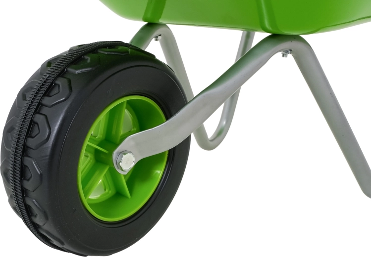 Komplettes Garten-Set für Kinder ab 3 Jahren mit grünem Schubkarrenrad, robusten Metallwerkzeugen und bequemen Handschuhen. Kinder können sicher graben, lockern und Erde transportieren und bei der Gartenarbeit mithelfen. Edelstahl-Aufsätze mit Holzgriffen und einfache Montage sorgen für Langlebigkeit und komfortable Nutzung.
