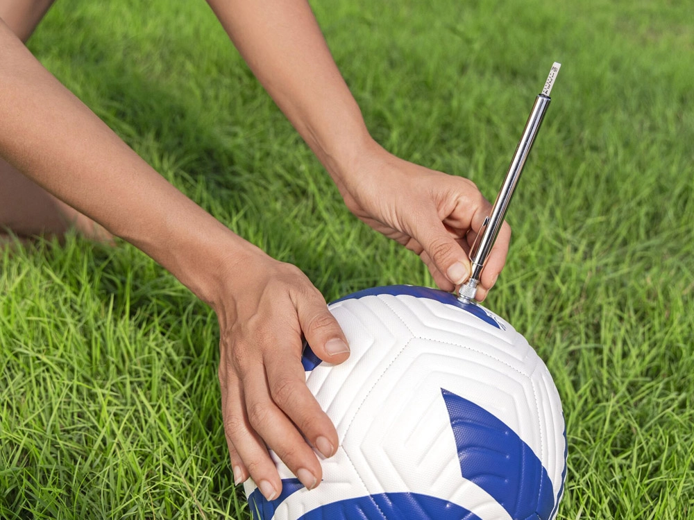 Leichte, nur 20 cm lange Pumpe mit ergonomischem Griff – ideal für den Sportplatz, den Urlaub und zu Hause.