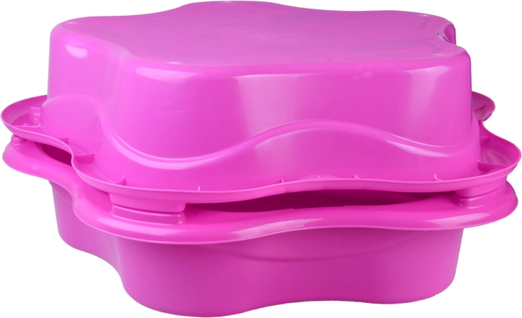 Jede Hälfte kann separat genutzt werden: eine mit Sand, die andere mit Wasser. Zusammengesteckt entsteht ein Deckel, der den Inhalt sauber hält.