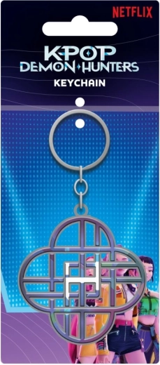 Dieser offiziell lizenzierte K-pop Demon Hunters-Schlüsselanhänger kombiniert hochwertige Verarbeitung mit dem einzigartigen visuellen Stil der Serie. Der Metallkörper mit einem komplexen geometrischen Muster, das an ein Kreuz oder ein vierblättriges Kleeblatt erinnert, wirkt clean und elegant und ist zugleich auffällig genug, um sofort ins Auge zu fallen.