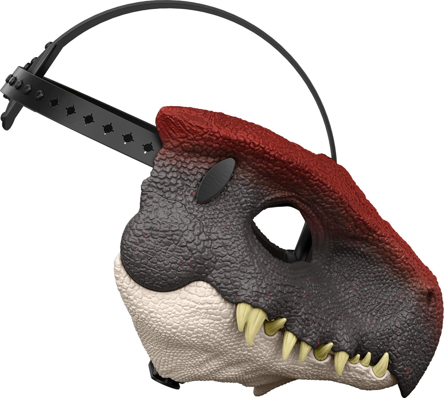 Die Mutadon-Maske von Mattel bietet Kindern ein authentisches Erlebnis aus der Welt von JURASSIC WORLD. Die realistische Gestaltung mit Farbverlauf vom roten Kamm über dunkelgraue Seiten bis zum beigefarbenen Kiefer, ergänzt durch markante Zähne und reliefartige Schuppen, erzeugt den eindrucksvollen Look eines prähistorischen Predators.