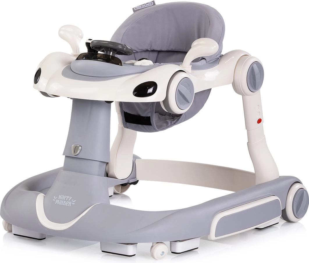 Der CHIPOLINO Happy Walker 5-in-1 ist eine multifunktionale Lösung für aktive Babys. Er bietet stabile Unterstützung bei den ersten Schritten, beruhigendes Wippen, einen Hüpmodus zur Muskelkräftigung sowie die Möglichkeit zu schieben oder wie auf einem Rutschfahrzeug zu fahren. Das interaktive Panel mit Lichtern, Musiktasten und beweglichen Spielzeugen fördert die Feinmotorik und die Sinne.