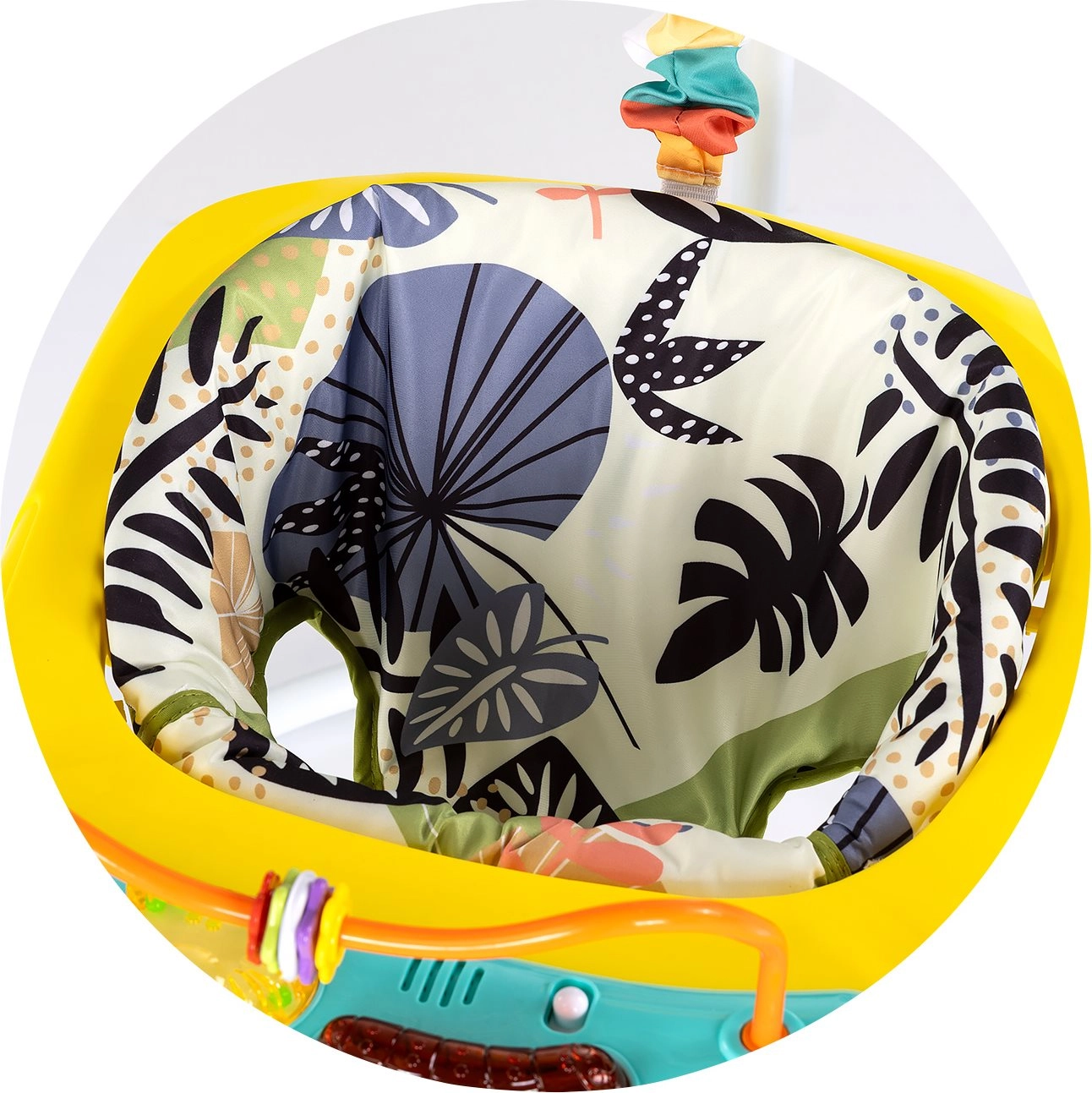 Weiche Polsterung und 2 Höhestufen gewährleisten Ergonomie und Komfort, damit das Hüpfspielzeug mit Ihrem Baby mitwächst.