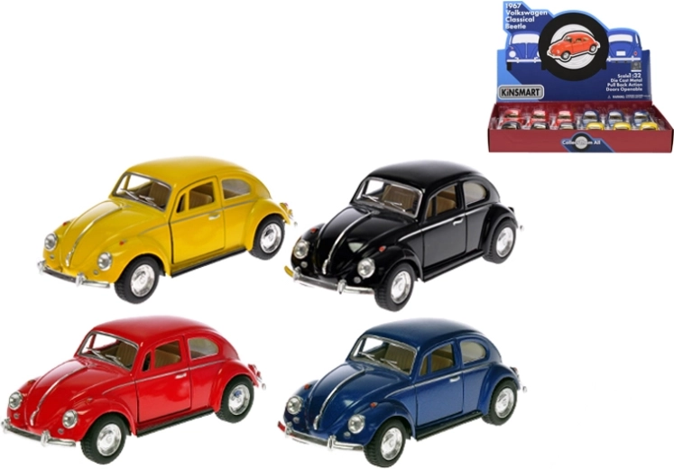 Detailreich gearbeitetes Metallmodell des legendären VOLKSWAGEN BEETLE von 1967 im Maßstab 1:32. Bietet zu öffnende Türen, einen Rückzieh-Mechanismus für die Vorwärtsfahrt und ein authentisches Erscheinungsbild mit 13 cm Länge. Hergestellt aus Metalllegierung mit Kunststoffteilen für hohe Widerstandsfähigkeit. Ideal für Sammler und Kinder ab 3 Jahren. Erhältlich in den Farben Rot, Schwarz, Gelb und Blau.