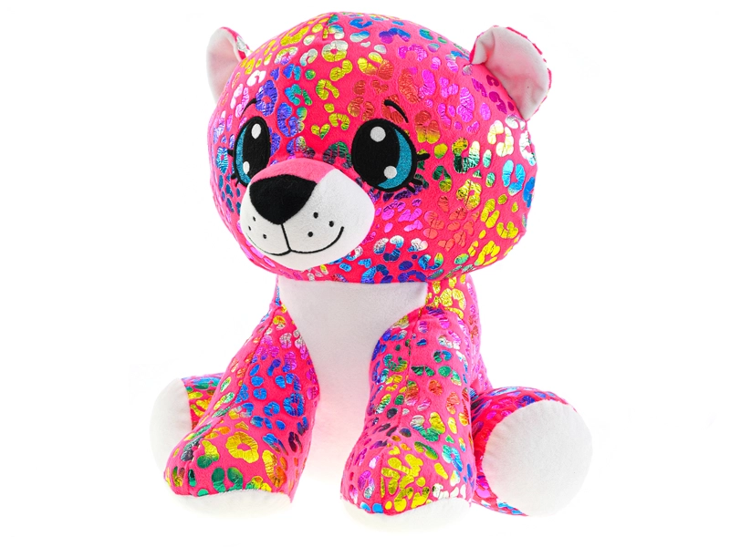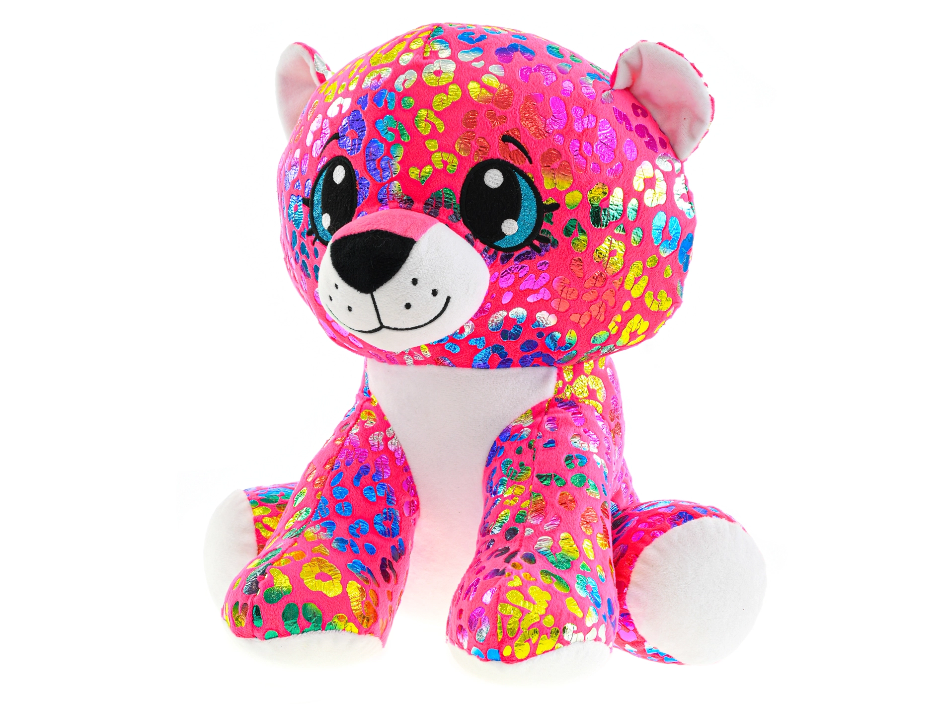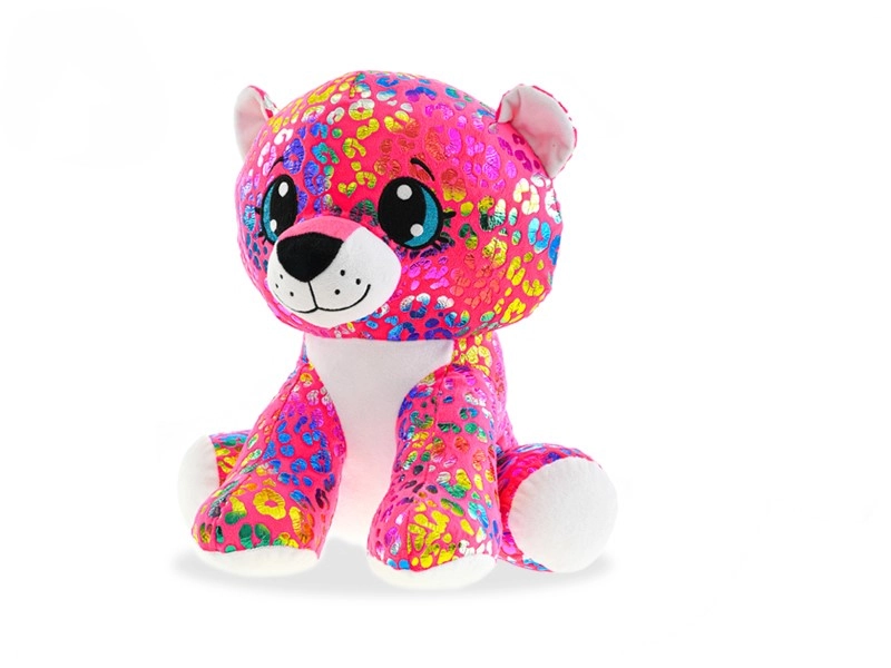 Der niedliche Plüsch-Leopard in sitzender Position begeistert Kinder auf den ersten Blick mit seinem leuchtend rosa Fell, mehrfarbig glitzernden Mustern und kuschelweichem Material, ideal zum Schmusen. Ein tolles Geschenk für kleine Tierliebhaber und stilvolle Plüschfans.
