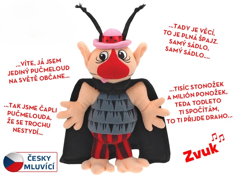 Das Spielzeug spricht Tschechisch und enthält beliebte Sätze wie zum Beispiel: „So, wir haben den Pučmeloud gefangen…“, „…alles Speck, alles Speck…“, „Wissen Sie, ich bin der einzige Pučmeloud auf der Welt…“ oder „Was ist das? Ist das etwa Musik, das da…?“