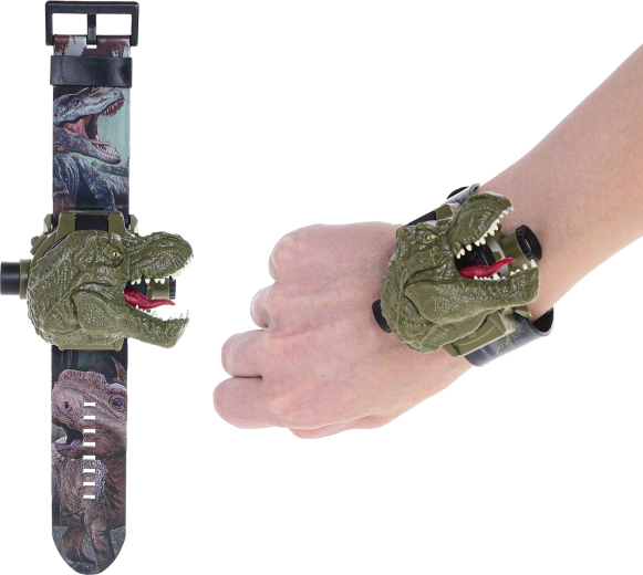 Entdecken Sie spielerisches Zeiterlernen mit der Dinoworld-Uhr! Diese Kinderuhr kombiniert die Zeitanzeige mit einem Projektor mit 24 Dinosauriermotiven, die an Wand oder Decke projiziert werden. Dank des leichten und robusten Kunststoffs, des verstellbaren Armbands und der im Lieferumfang enthaltenen Batterien ist sie sofort einsatzbereit. Ideal als Geschenk für Kinder ab 3 Jahren.