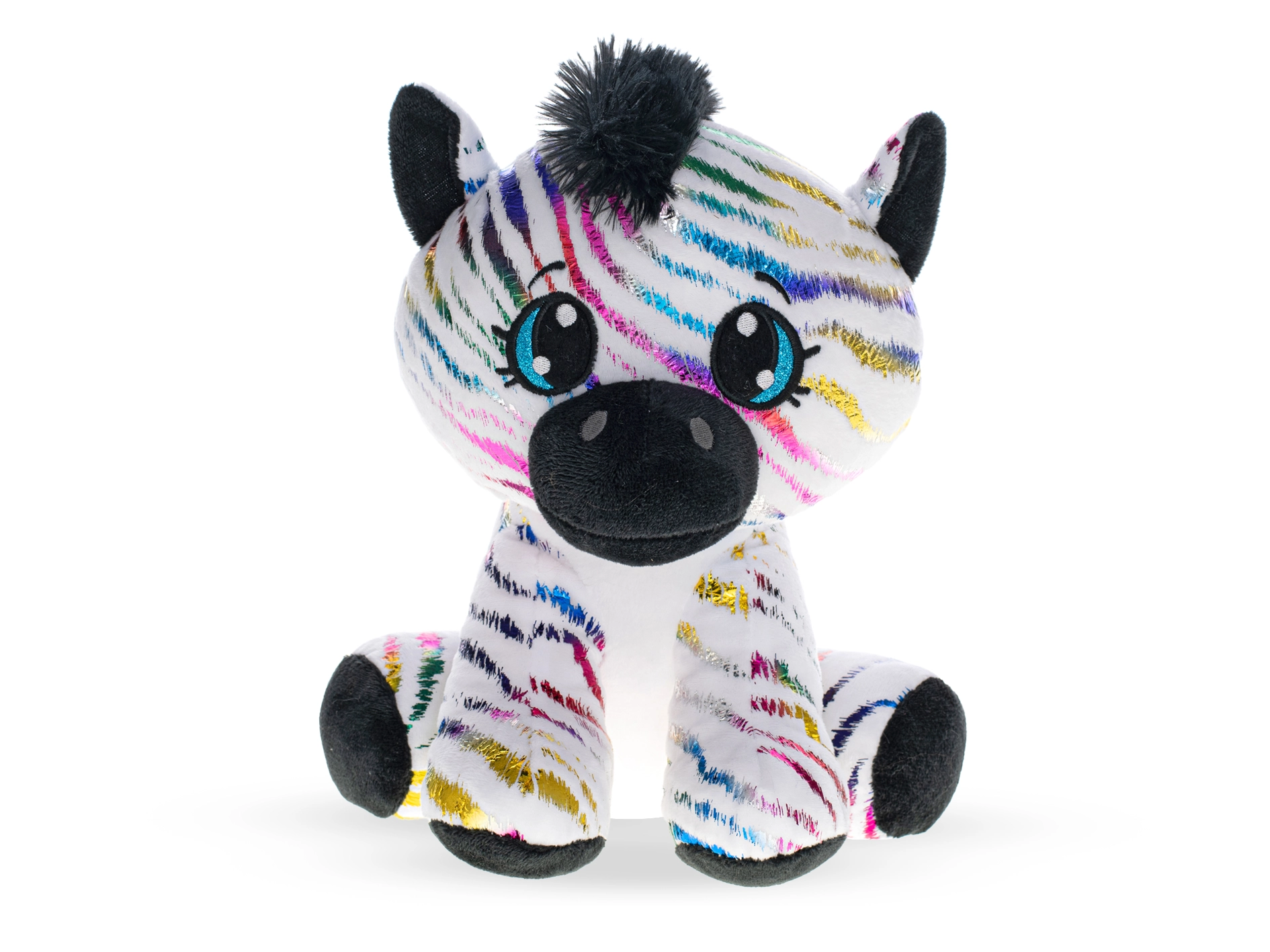 Plüsch-Zebra mit regenbogenfarbenem Glitzer 24 cm – sitzend