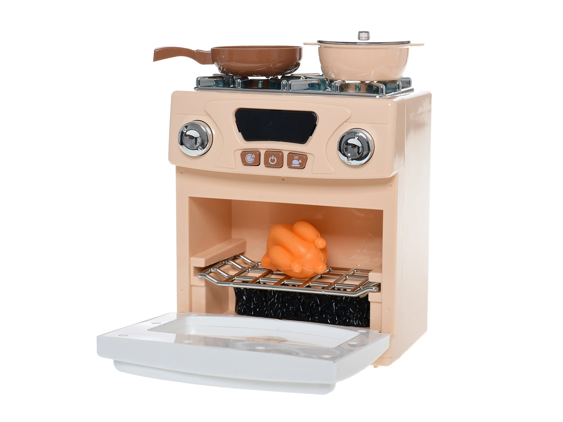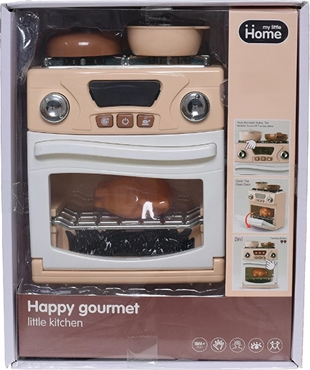Zum Set gehört außerdem eine praktische Auswahl an Koch-Accessoires, sodass kleine Köche ihre „Spezialitäten“ direkt nach dem Auspacken zubereiten können. Dank der kompakten Größe von 18 × 15 × 9 cm passt der Herd problemlos ins Kinderzimmer oder in die Spielecke und lässt sich leicht transportieren.