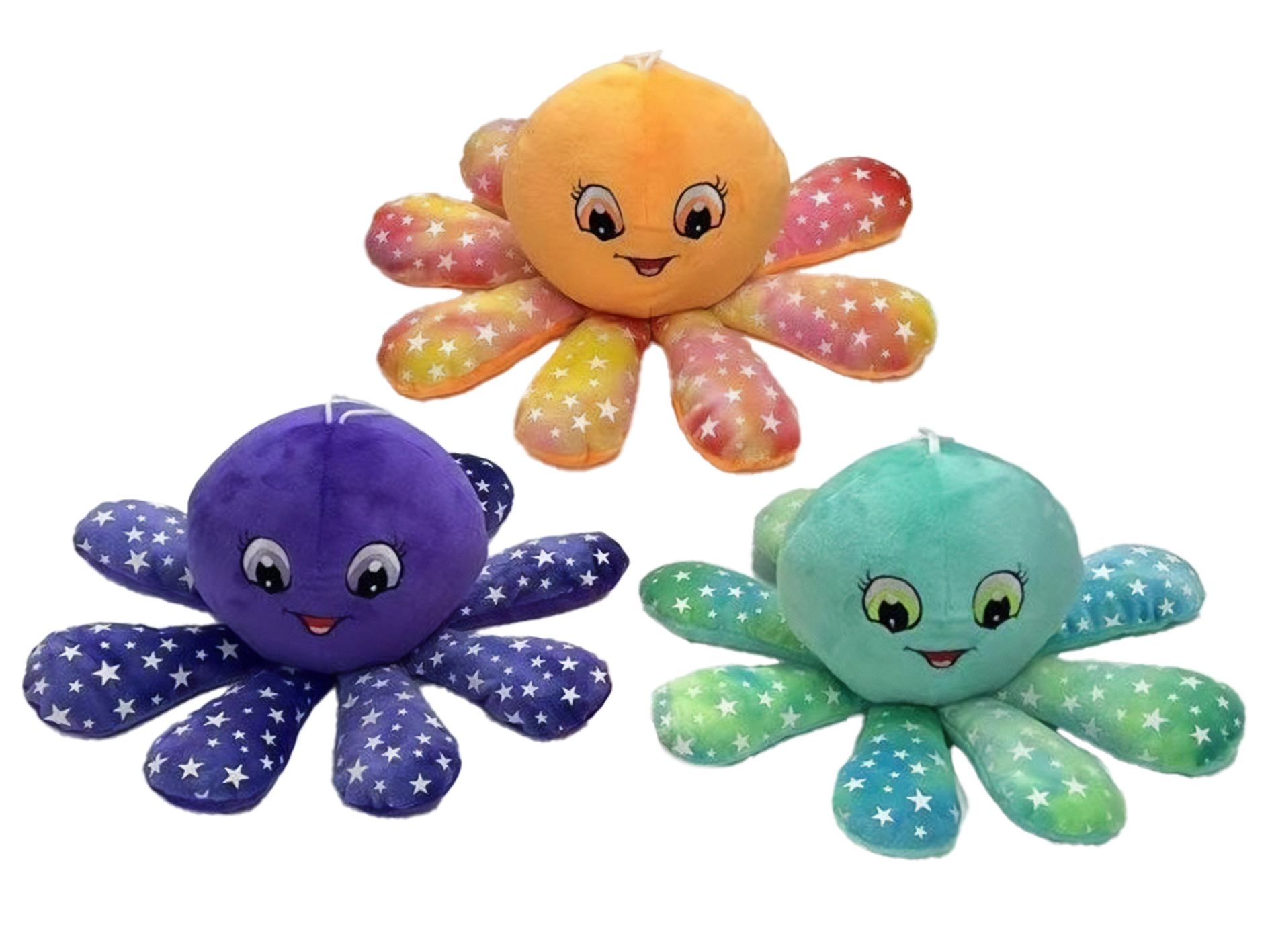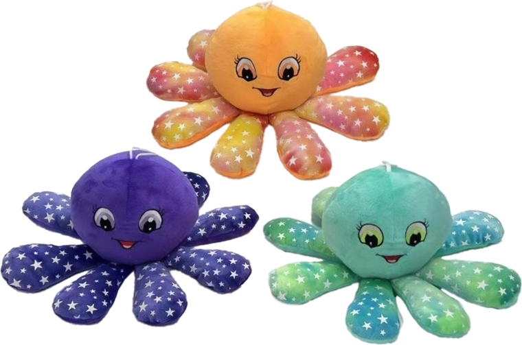 Dieser zarte Plüsch-Oktopus ist für sicheres Kuscheln und erste Entdeckungen konzipiert. Die weiche Oberfläche fühlt sich angenehm an und ist sanft zur empfindlichen Kinderhaut. Dank phosphoreszierender Materialien leuchtet das Spielzeug nach dem Aufladen im Licht im Dunkeln und schafft eine beruhigende Atmosphäre.