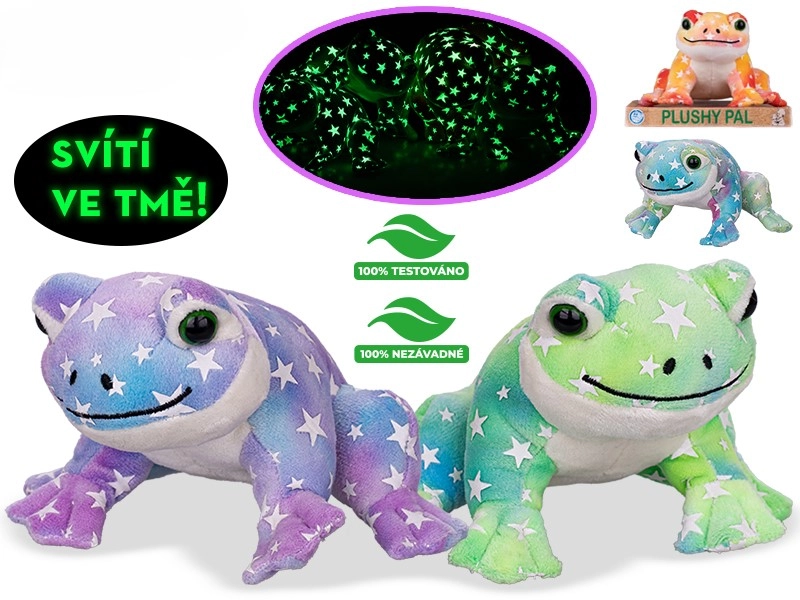 Niedlicher Plüschfrosch in der Größe 12 cm, der im Dunkeln leuchtet und Kindern hilft, sich nachts sicher zu fühlen. Hergestellt aus kuschelweichem Qualitätsplüsch, geeignet ab der Geburt. Erhältlich in 4 leuchtenden Farben – Grün, Orange, Lila und Blau.