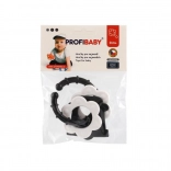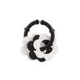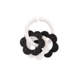 Entdecken Sie Beißringe, die speziell für die Kleinsten entwickelt wurden – das kontrastreiche Schwarz-Weiß-Design zieht die Aufmerksamkeit des Babys auf sich und hilft, die visuelle Wahrnehmung zu stimulieren. Dank des praktischen Griffs liegt der Beißring gut in kleinen Händchen, und die Rassel bietet eine sanfte akustische Stimulation.