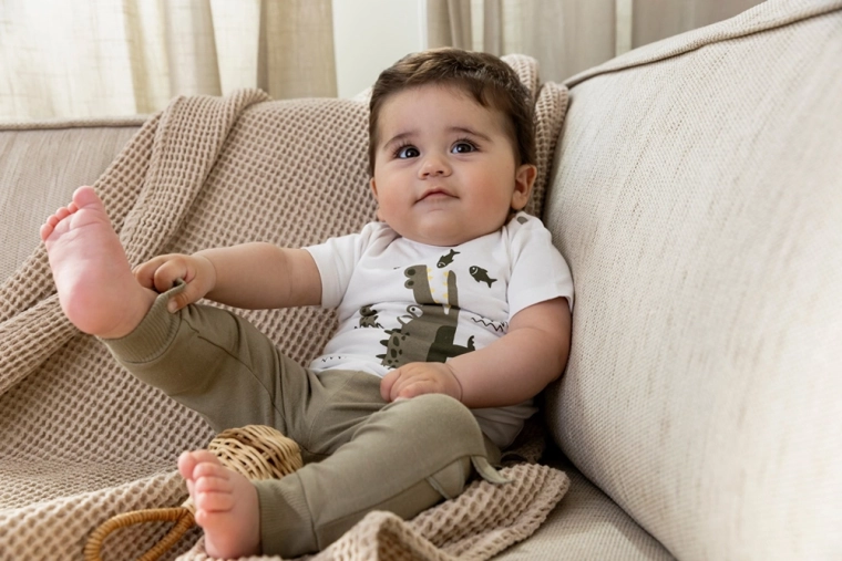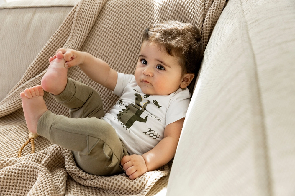 Der Baumwolljersey mit Elastan-Anteil ist sanft zur Kinderhaut, passt sich schön an und schränkt die Bewegung beim Spielen oder Ausruhen nicht ein.
