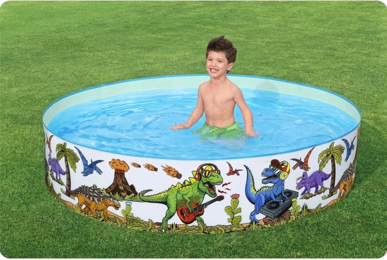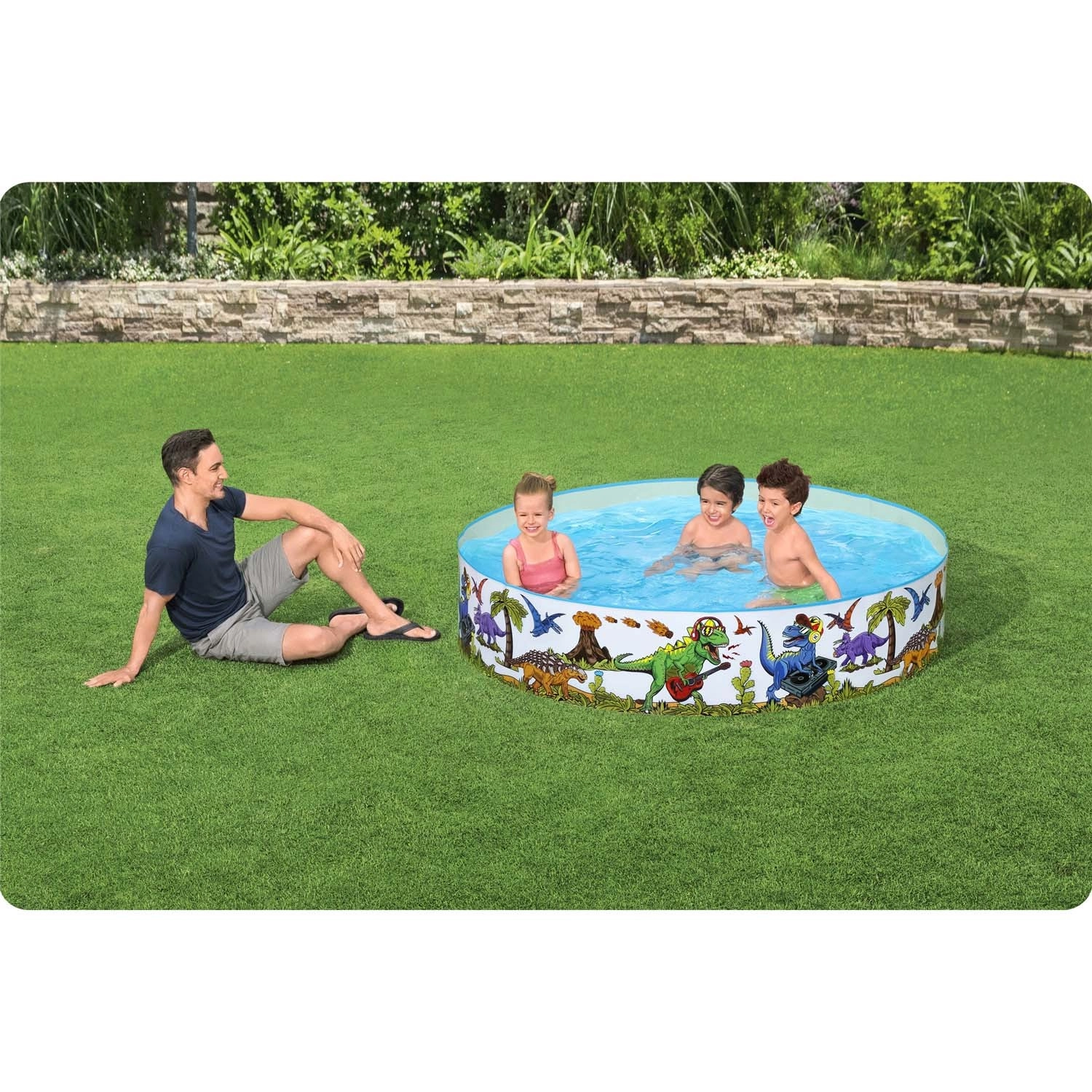 Sorgen Sie an heißen Tagen für Spaß und Abkühlung der Kinder mit dem runden Bestway-Planschbecken im Dinosaurier-Design. Es hat einen familienfreundlichen Durchmesser von 183 cm, robuste Vinylwände und einen PVC-Boden für höhere Widerstandsfähigkeit. Der farbenfrohe Dinosaurierdruck regt zum Spielen an, die einfache Montage spart Zeit und die Kapazität von bis zu 946 l bietet reichlich Platz zum Plantschen.