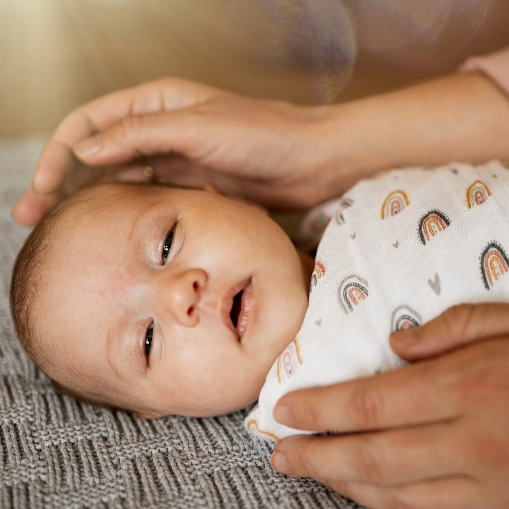 Das Format 120 × 120 cm erleichtert sicheres und komfortables Pucken sowie weitere Einsatzzwecke – von der Decke bis zum Kinderwagen-Sonnenschutz oder einer leichten Decke für den Autositz.