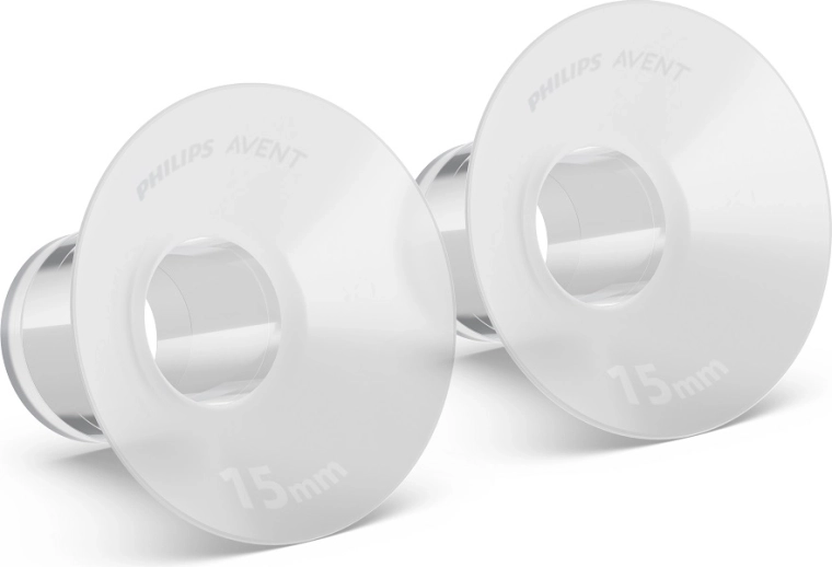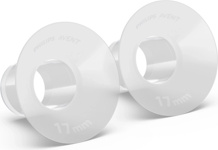 Die Einsätze in 15 mm und 17 mm füllen den Raum in 21-mm-Brustschilden aus, damit das Abpumpen auch beim freihändigen Gebrauch bequem, sanft und stabil ist.