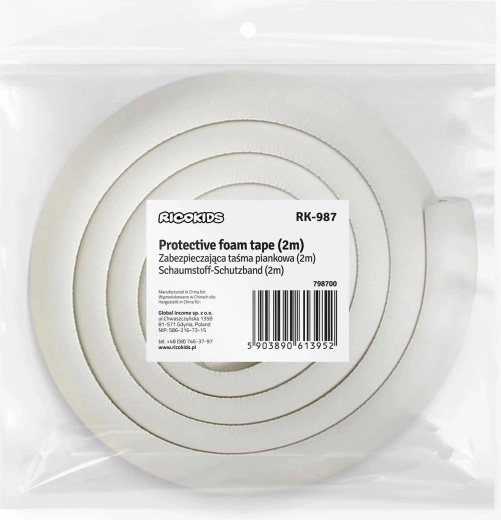 Der RICOKIDS-Schaumkantenschutz bietet zuverlässigen Schutz für scharfe Kanten von Tischen, Schränken oder Regalen. Dank des hochwertigen Schaums ist er angenehm weich und zugleich robust; durch den UV-Schutz bleibt die Farbe lange erhalten. Die Montage ist einfach – Oberfläche entfetten, Folie entfernen und fest andrücken.