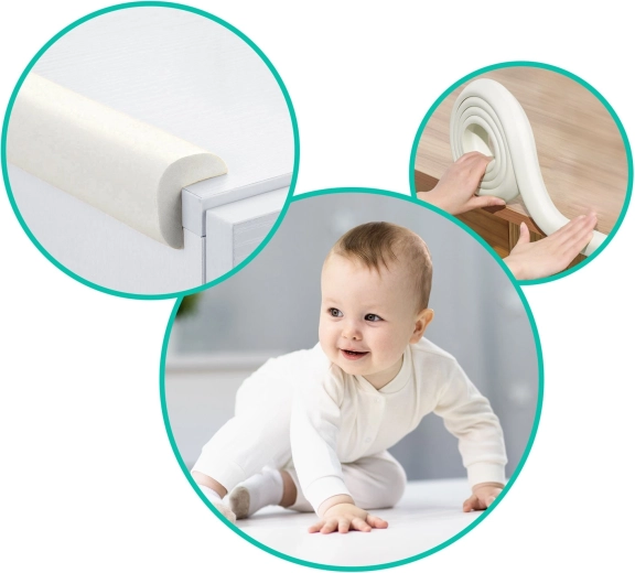 Hochwertiges Schaummaterial entschärft zuverlässig scharfe Kanten und hilft, Kinder vor Stößen zu schützen. Die flexible Konstruktion passt sich geraden und leicht abgerundeten Kanten an.
