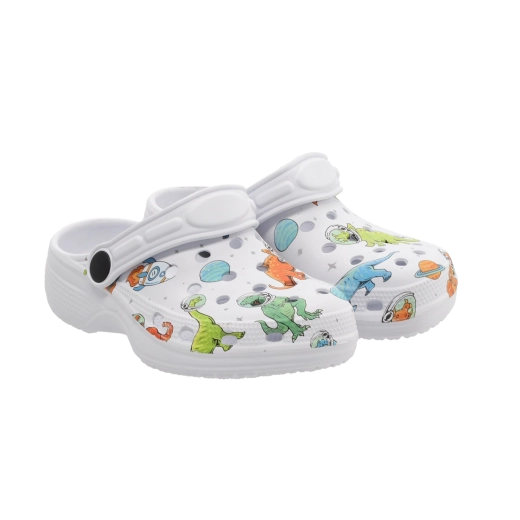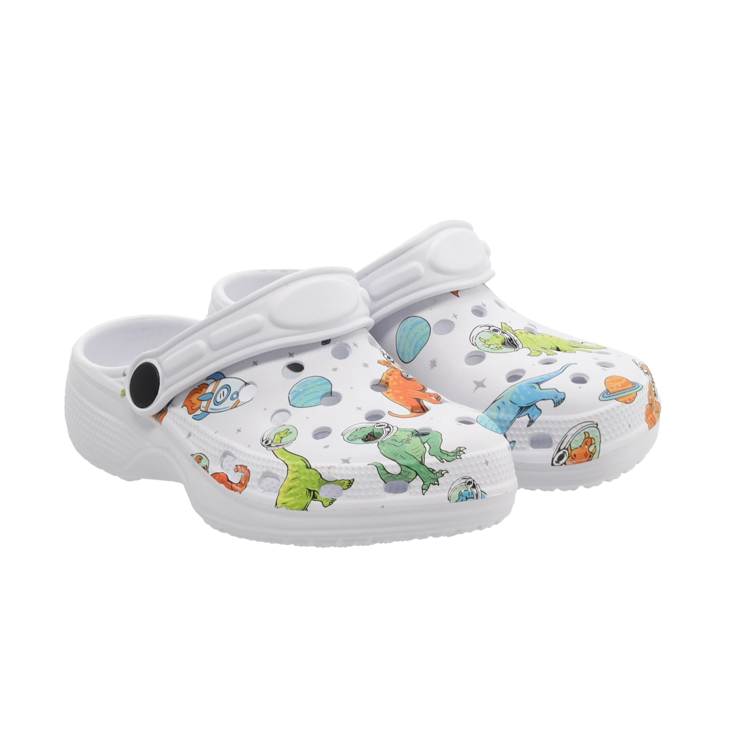 Leichte Kinder-Crocs aus robustem EVA-Schaum bieten hervorragenden Alltagskomfort. Strategische Belüftungsöffnungen halten die Füße trocken, die profilierte Sohle dämpft den Auftritt und der beidseitig tragbare Riemen an der Ferse hält den Schuh sicher am Fuß. Sie sind wasserabweisend, leicht zu reinigen und ideal für Garten, am Wasser und für den täglichen Gebrauch.