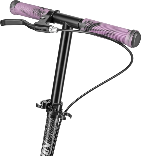 Große PU-Räder mit 200 mm Durchmesser und ABEC-7-Lager garantieren eine geschmeidige und dynamische Fahrt auf Asphalt wie auch Pflaster. Für sicheres Anhalten sorgt die Handbremse, ergänzt durch eine hintere Trittbremse, während der praktische Ständer das Parken überall erleichtert.