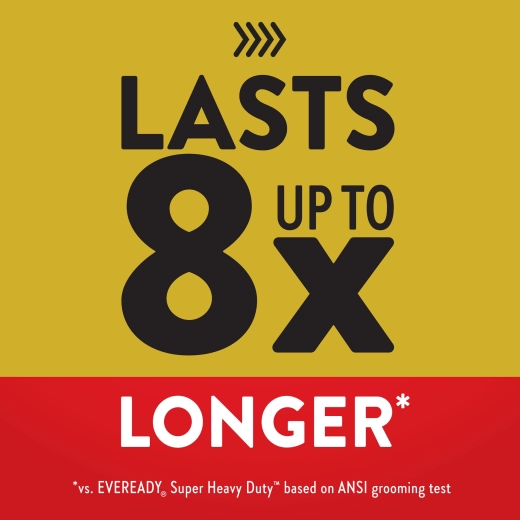• Bis zu 3× längere Lebensdauer als herkömmliche Zink-Kohle- (Super Heavy Duty) Batterien