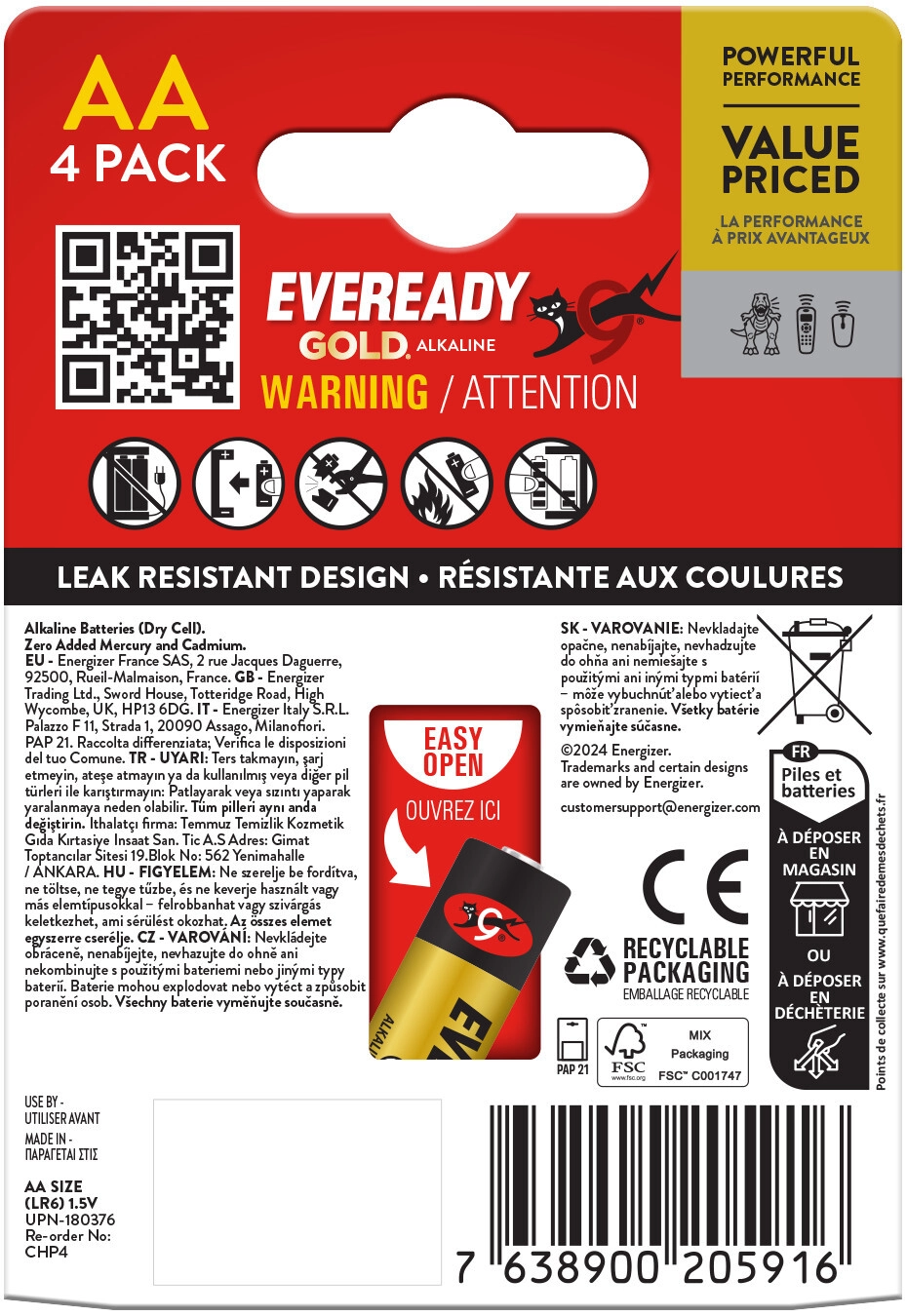 Alkalische Batterien AA ENERGIZER Eveready Gold, 4 Stk.
