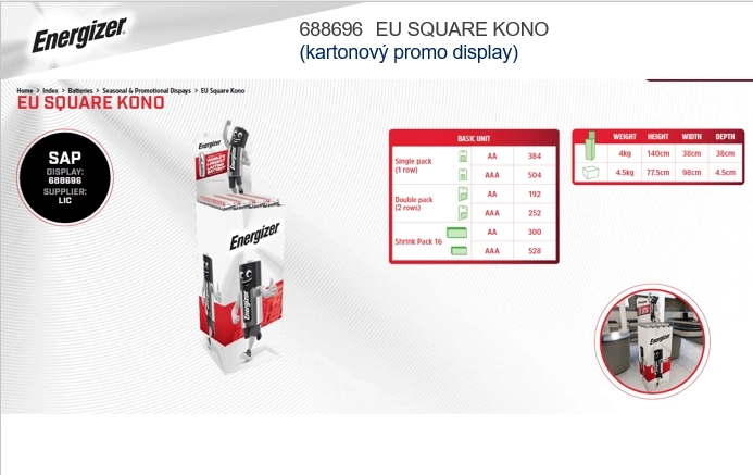 Praktischer Batterieständer ENERGIZER mit einer Höhe von 60 cm bietet eine übersichtliche und effiziente Präsentation einer breiten Palette von Batterien im Geschäft. Dank der kompakten Abmessungen eignet er sich auch für kleinere Räume und bietet dennoch ausreichend Platz für die Präsentation. Die stabile und robuste Konstruktion erleichtert das Nachfüllen und erhöht den Komfort der Kunden bei der Auswahl.