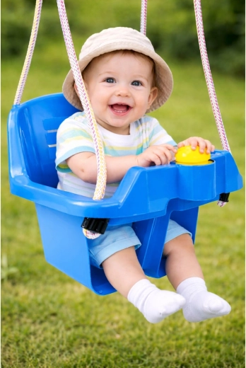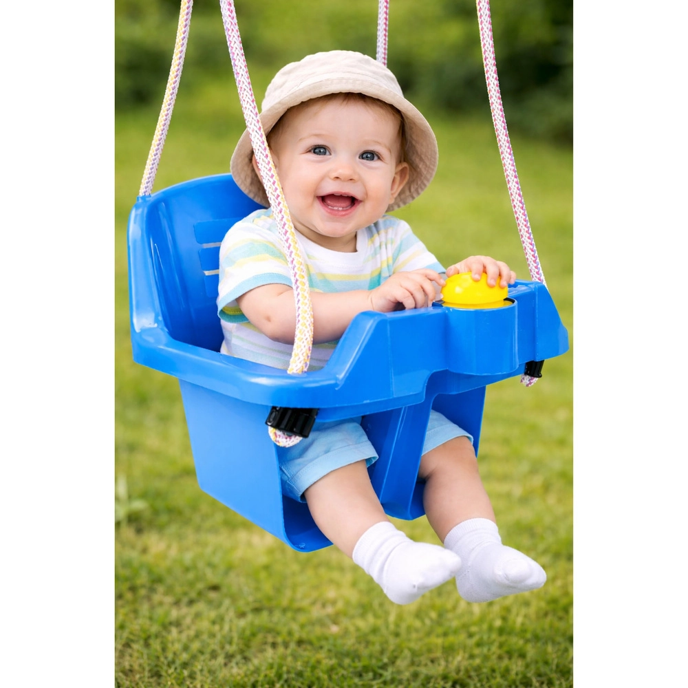 Diese blaue Kinder-Bucket-Schaukel bringt Freude und Eltern Gelassenheit dank des durchdachten Designs. Tiefer Sitz, hohe Rückenlehne und vordere Sicherheitsbarriere halten das Kind in der richtigen Position. Die Schaukel kann im Haus oder im Garten aufgehängt werden – widerstandsfähiger Kunststoff und stabile Seile sorgen für Langlebigkeit und sicheres Schaukeln.