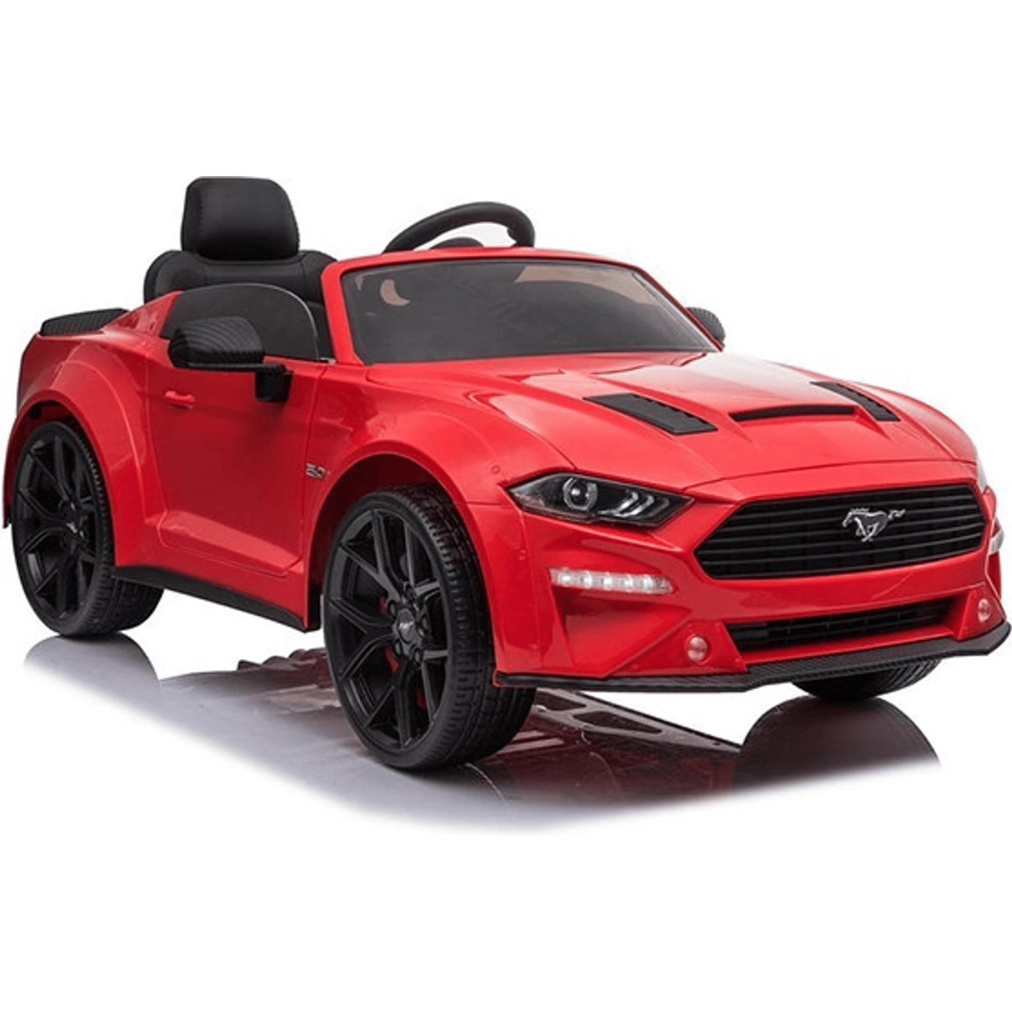 Stilvolles elektrisches Kinderauto, inspiriert vom ikonischen FORD MUSTANG, begeistert mit lackiertem Rot, realistischen Details und reicher Ausstattung. Es bietet 2,4-GHz-Fernbedienung für Eltern, sanftes Anfahren, zwei nach oben öffnende Türen, MP3/USB/Bluetooth, LED-Lichter und EVA-Reifen für eine leise und komfortable Fahrt.