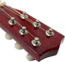 Der rote Kopf verleiht einen leuchtenden Farbakzent, der das Gitarrenspiel noch ansprechender macht.